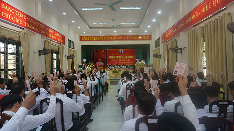Toàn cảnh đại hội - Các đại biểu nhất trí biểu quyết