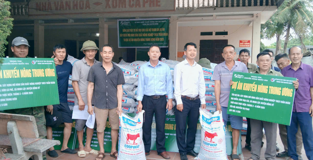 Ngày 25 - 26/4/2025, Trung tâm Khuyến nông tỉnh Thái Nguyên phối hợp với UBND xã Minh Lập, huyện Đồng Hỷ và phường Hồng Tiến, thành phố Phổ Yên bàn giao vật tư hỗ trợ cho các hộ dân tham gia mô hình sản xuất nông nghiệp theo tuần hoàn thuộc dự án Khuyến nông trung ương năm 2025
