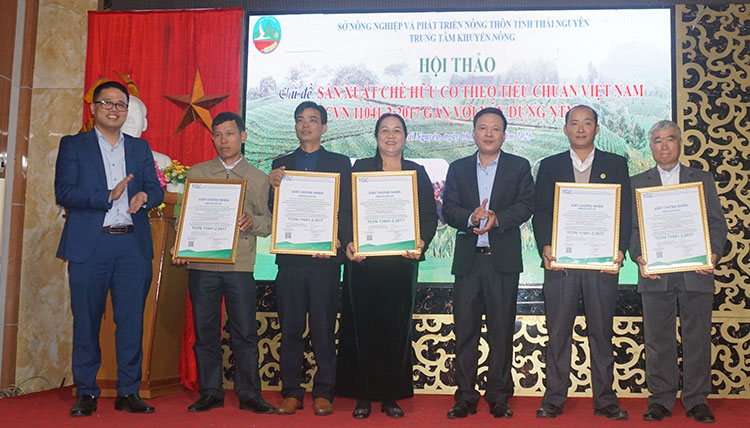 Trung tâm Khuyến nông Thái Nguyên đã phối hợp với Tổ chức chứng nhận (Trung tâm Kiểm nghiệm và Chứng nhận chất lượng TQC) khảo sát vùng và lấy mẫu đất, nước tại các địa bàn triển khai mô hình. Đào tạo về sản xuất theo tiêu chuẩn hữu cơ hữu cơ TCVN 11041-2:2017 cho cán bộ và nông dân tham gia mô hình (Hướng dẫn thanh tra nội bộ và hoạt động của ban quản lý tổ hợp tác, hợp tác xã; hướng dẫn thực hành…); đánh giá sơ bộ lấy mẫu sản phẩm; tư vấn hướng dẫn khắc phục lỗi, kiểm tra nội bộ; đánh giá chính thức cấp giấy chuyển đổi sản xuất sang hữu cơ; cấp chứng chỉ chuyển đổi sang sản xuất chè hữu cơ…