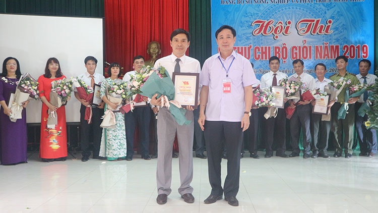 Đồng chí Phạm Văn Sỹ trao giải nhất Hội thi Bí thư Chi bộ giỏi năm 2019 cho đồng chí Dương Sơn Hà - Bí thư Chi bộ Trung tâm Khuyến nông