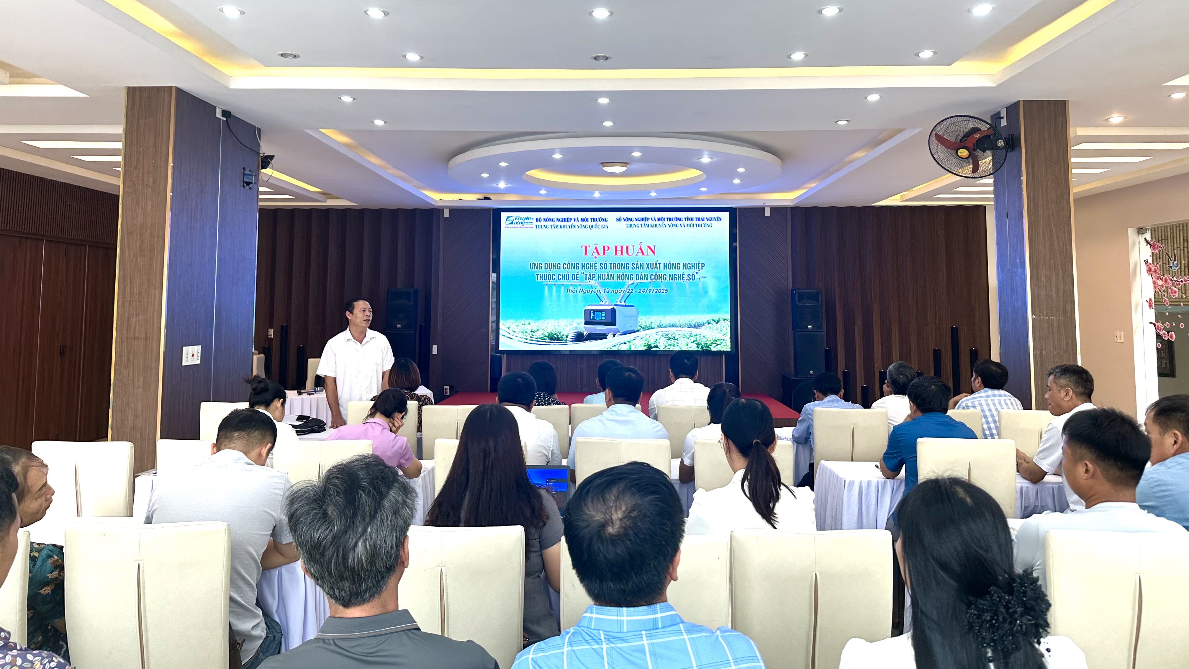 Ông Nguyễn Đình Thông - Phó Giám đốc Trung tâm Khuyến nông và Môi trường tỉnh Thái Nguyên phát biểu khai mạc lớp tập huấn Ứng dụng công nghệ số trong sản xuất nông nghiệp
