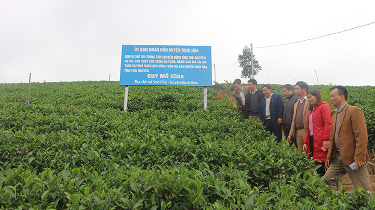 Thăm Mô hình Sản xuất chè xanh an toàn, nâng cao giá trị gia tăng và phát triển bền vững tại xã Sơn Phú, huyện Định Hóa